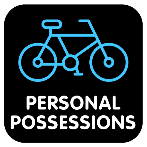 Clothes and items of a personal nature (likely to be worn, used or carried) when they are in the home. This includes spectacles, contact lenses, portable gadgets such as radios, phones and tablets, bicycles and sports equipment.